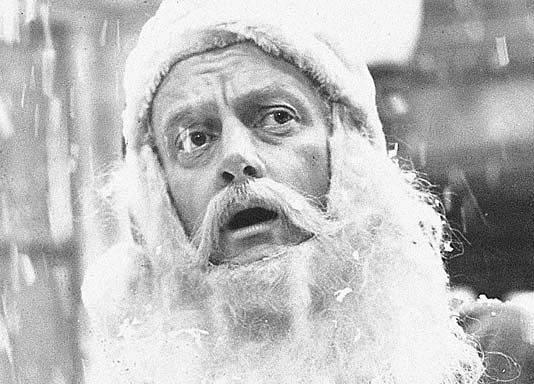 Stumbling aimlessly into an alley, he hears sleigh bells and trips over a large burlap bag, overfilled with packages, which seems to have the ability to produce any item that's asked of it. Overjoyed at his sudden, inexplicable ability to fulfill a lifelong dream, Corwin proceeds to hand out gift-wrapped presents to passersby and then, upon entering Sister Florence's "Delancey Street Mission House", to derelict men attending Christmas Eve service. Irritated by the disruption, Sister Florence goes outside to fetch Officer Flaherty, who proceeds to arrest Corwin for apparently stealing merchandise from his former place of employment. Flaherty then contacts Mr. Dundee, who arrives at the police station exclaiming, "Ah-ha, here he is, and here we are, and there that is!". Calling Corwin a "moth-eaten Robin Hood", Dundee reaches into the garbage bag to display some of the purported "wholesale theft of thousands of dollars worth of goods" but, as he pulls out a couple of empty cans, and a cat emitting a meow emerges from the bag onto the precinct counter, Corwin interjects, "this bag doesn't know whether to give out gifts or garbage". Seeing what just happened, Flaherty tells Corwin to "clean up this mess and get out of here", as Dundee, angry at having his time wasted, throws accusations of incompetence at Flaherty, who responds that "like Corwin says, we're dealing with the supernatural here". With sarcastic disbelief, Dundee then challenges Corwin to produce a bottle of cherry brandy, vintage 1903 and, as he turns to Flaherty and continues to berate him ("...how dare you drag me here at the busiest time of the year..."), Corwin comments "oh, that's a good year" and reaches into the bag to hand Dundee his exact request. Leaving the precinct, he continues to distribute gifts for the remainder of the evening until the bag is empty. Burt, an elderly local resident who had already received a couple of Corwin's presents, points out that Corwin has taken "nothing for yourself, not a thing" and Corwin replies that his only wish is to do this every year. Returning to the alley where he found the bag, he encounters an elf (in the persona of an adolescent girl), with a sleigh and four reindeer waiting to take him to his destiny as the eternal Santa Claus.